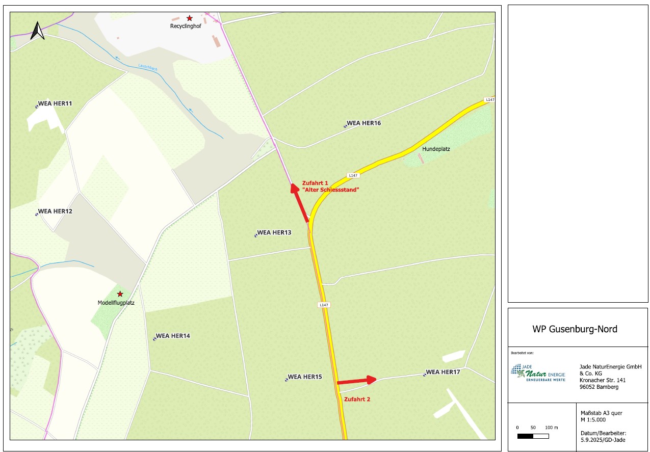 Des Weiteren muss an den beiden Zufahrten zu den Windpark-Arealen von der Landesstraße L147 im Rahmen der Rodungs- und späteren Bauarbeiten mit erhöhtem Verkehrsaufkommen gerechnet werden.